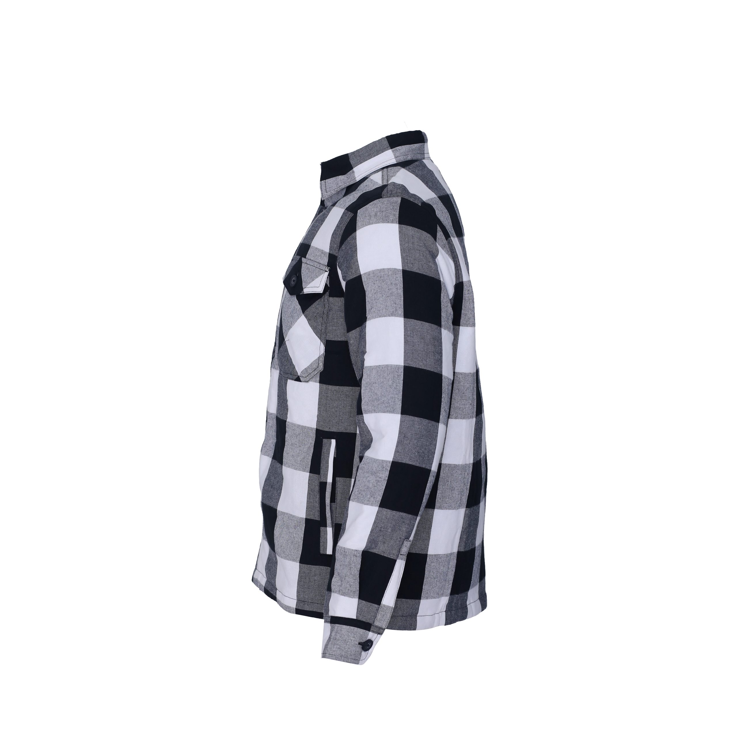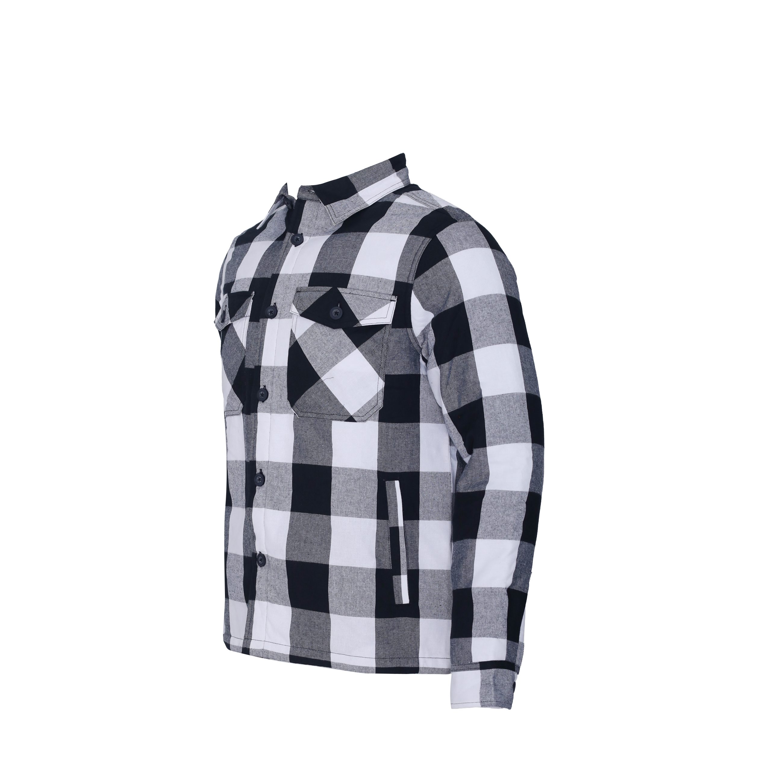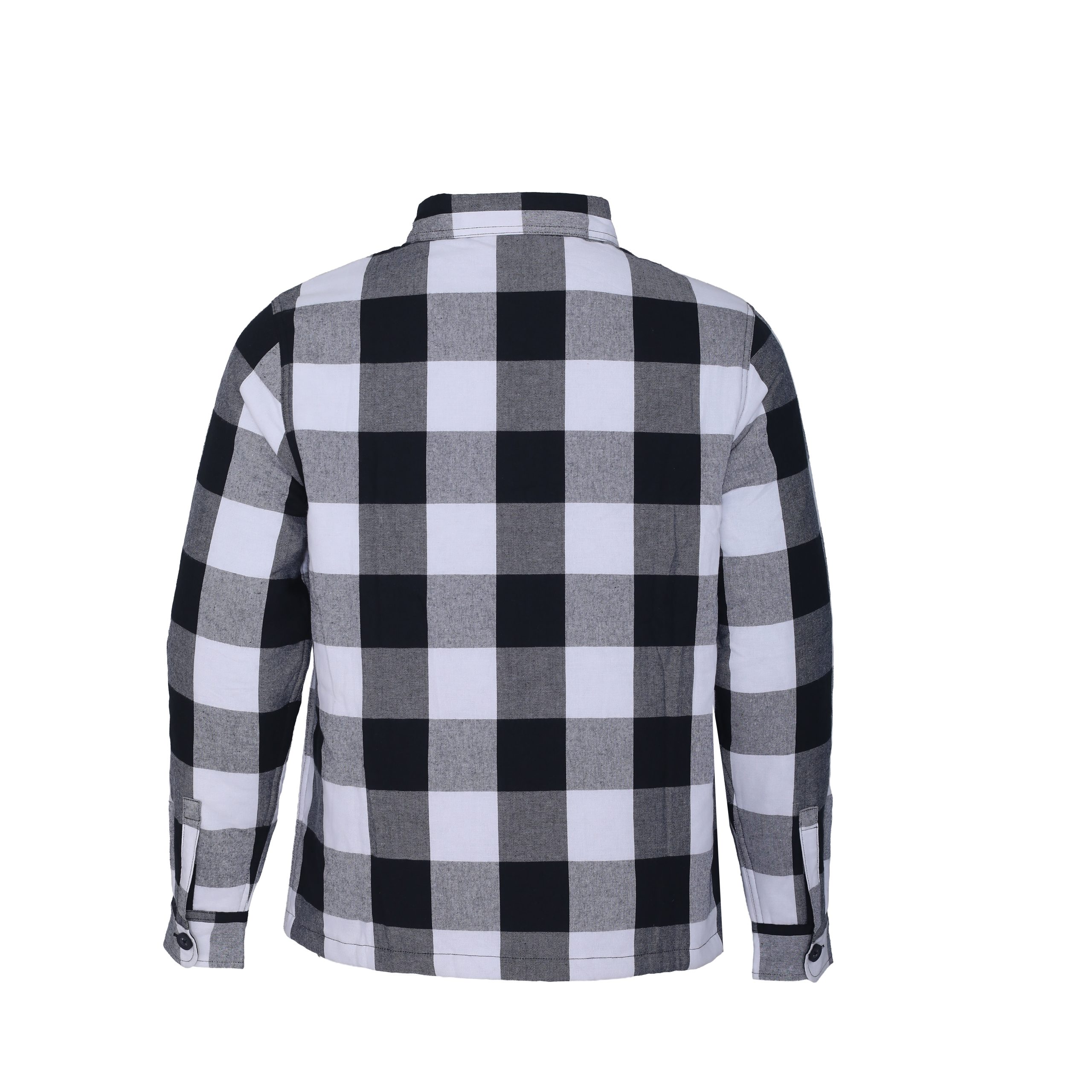 Crafted for colder days and effortless layering, this white-and-black check lumberjacket brings the perfect balance of rugged charm and everyday comfort. Made with a 100% cotton outer shell, it delivers the warmth and texture of classic flannel, while the soft polyester padding inside provides reliable insulation without feeling bulky. The straight-cut silhouette creates a clean, structured look that pairs easily with denim, chinos, or winter essentials.